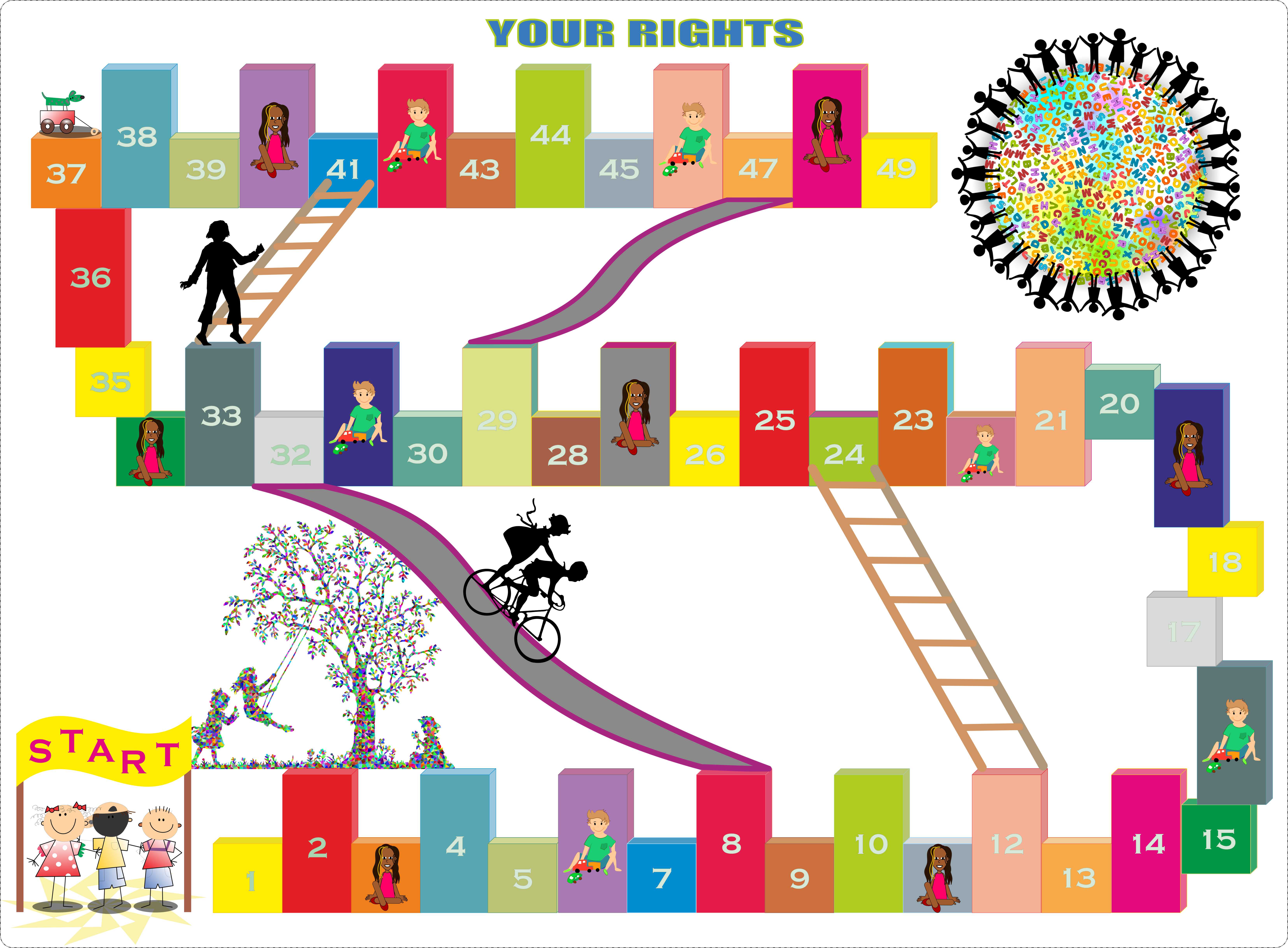 • Kortelės “Tavo teisės” (4 priedas) atspausdinta A2 formatu (420 mm x 594 mm), nespalvota daugiau kaip 200 g / m2, pvz., naudojant matinį kartoną. Galite įlaminuoti.